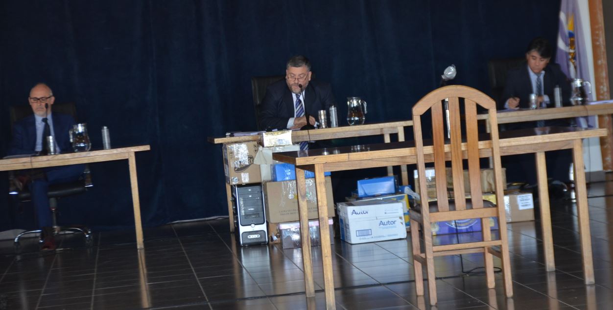 Los jueces Carlos Arenillas, Joaquín Cabral y Jorge Yance. FOTO: MIRTA VELÁSQUEZ / LA OPINIÓN AUSTRAL.