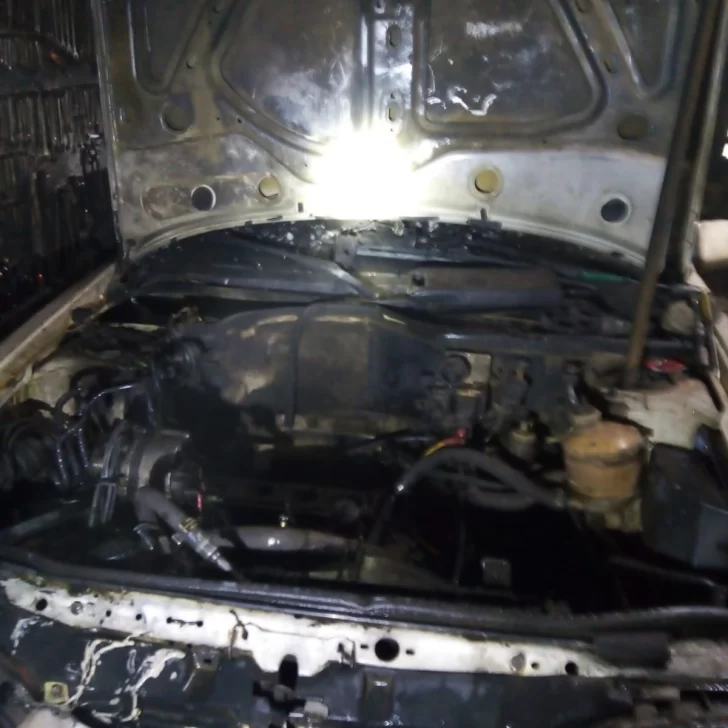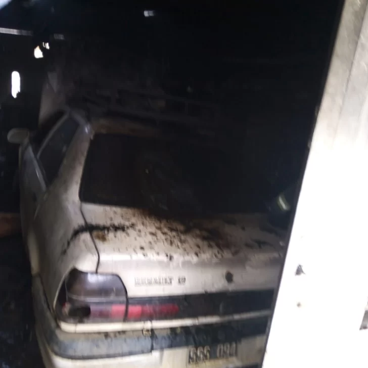 De inmediato se envió el autobomba. Al llegar, el personal dialogó con el propietario, quien señaló el área comprometida. Dentro del lugar encontraron un vehículo con el capó abierto, gran cantidad de humo y fuego en la rueda trasera izquierda.