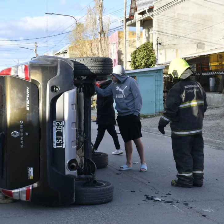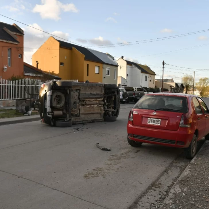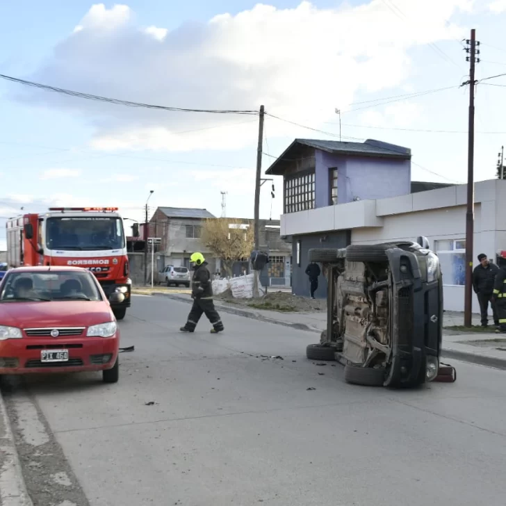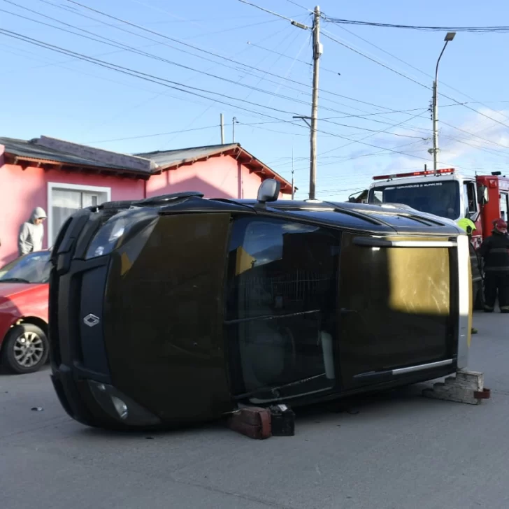 Un fuerte accidente automovilístico ocurrió la tarde de este domingo en el barrio Belgrano de Río Gallegos, resultando en el vuelco de un vehículo.