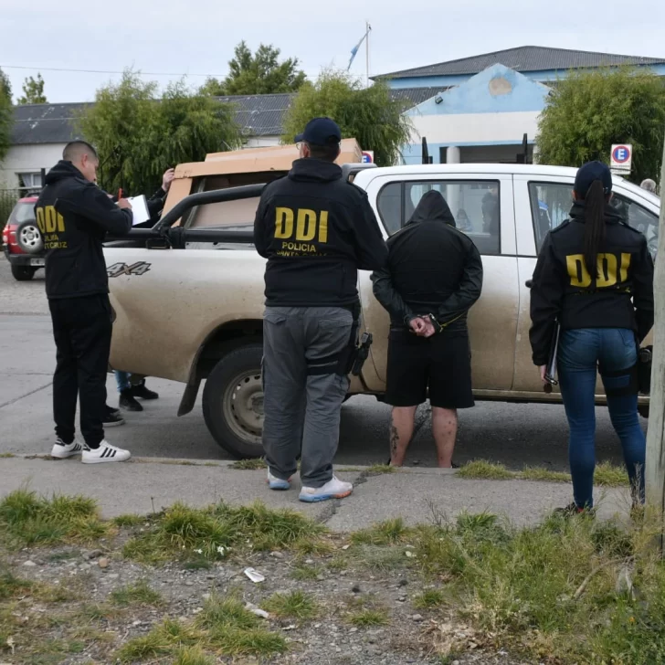 La Opinión Austral se acercó al lugar, donde el titular de la cartera laboral, Julio Gutiérrez, dialogaba con los efectivos policiales. Tal como pudo registrar este medio, la División de Investigaciones (DDI) esposó a un sujeto que se encontraba junto a una camioneta Toyota Hilux, en cuya caja de carga se hallaban distintas autopartes.