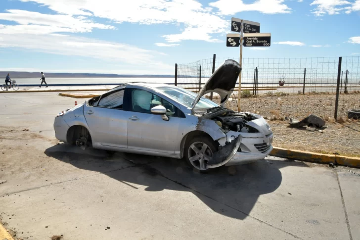 El siniestro ocurrió alrededor de las 5 de la mañana, cuando un Peugeot 408 gris -guiado por una joven de 26 años- que circulaba por la costanera intentó doblar hacia calle Sureda. En esa maniobra, el rodado impactó contra el cordón de la rotonda, provocando un violento vuelco. El automóvil terminó en sentido contrario al tránsito, con dos ruedas desprendidas y serios daños estructurales.