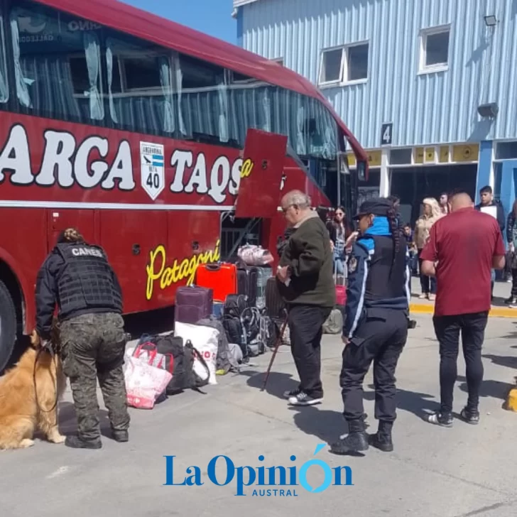 En el marco de una operación dirigida por la Superintendencia de Judicial e Investigaciones y la Dirección General de Investigaciones, se llevó a cabo un operativo integral que abarcó todo el ámbito provincial, específicamente en la Terminal de Ómnibus de Río Gallegos este sábado. Diversas divisiones participaron en la acción, entre ellas Enlace y Cooperación contra el Delito Internacional, Investigaciones, Canes y Apoyo Tecnológico.