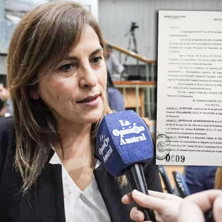 Luego de mencionar que tanto el presidente, el vicepresidente y los vocales del CPE son puestos en funciones por Acuerdo de la Legislatura Provincial, en el decreto -al que tuvo acceso La Opinión Austral– se indicó que “atento a lo anterior y a la imperiosa necesidad de la continuidad de la gestión administrativa y funcionamiento operativo del organismo resulta procedente designar ad referéndum de la Honorable Cámara de Diputados, a la profesora Iris Adriana Rasgido, en el cargo de presidente del Consejo Provincial de Educación”.