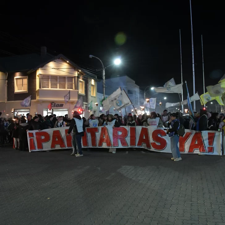 Gremios estatales nucleados en el Frente Sindical se movilizaron este martes por la noche en Río Gallegos para pedir por paritarias.