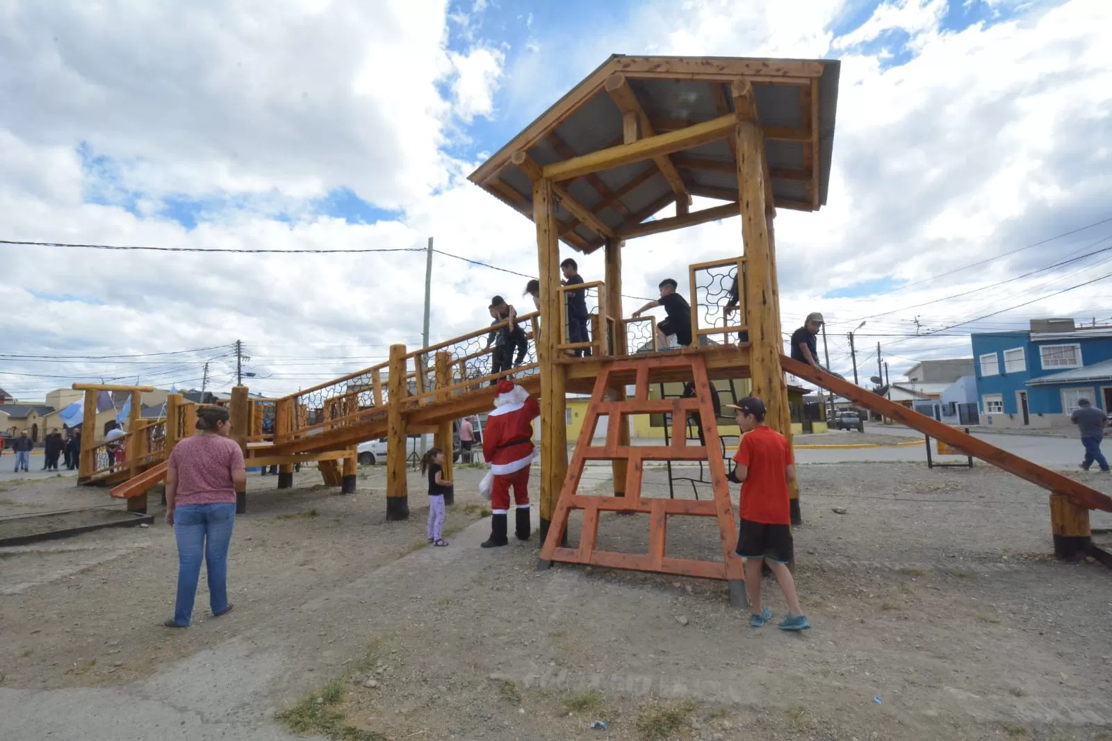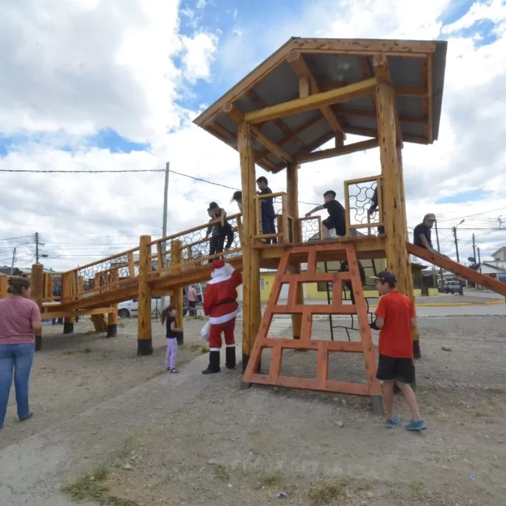 El intendente de Río Gallegos, Pablo Grasso, inauguró este viernes, en la víspera de la Navidad, la nueva plaza de troncos que estará instalada en el corazón del barrio Evita. La obra se suma a otros espacios recreativos construidos con madera ubicados en diferentes barrios de la ciudad.