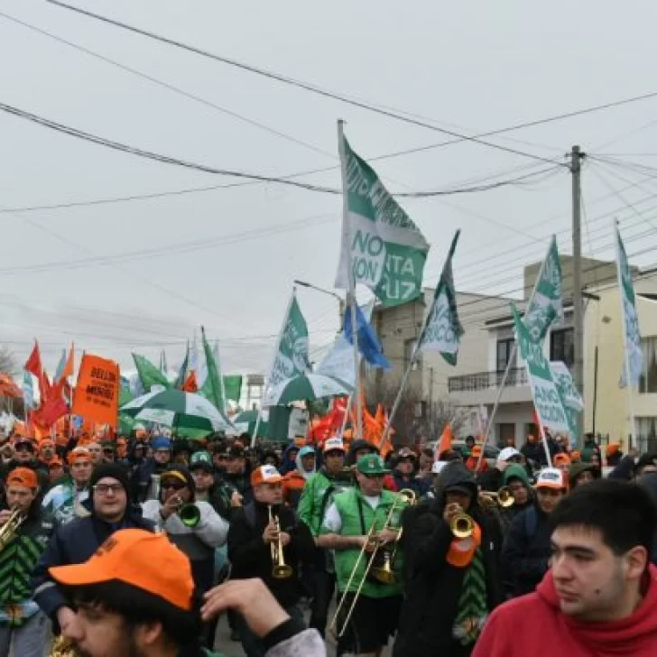 Las Pancartas naranjas, amarillas, verdes y blancas de la Agrupación Santacruceña se mezclaban sobre la avenida, mientras por detrás se acercaba la columna del partido Provincia Joven con bengalas de humo y banderas.