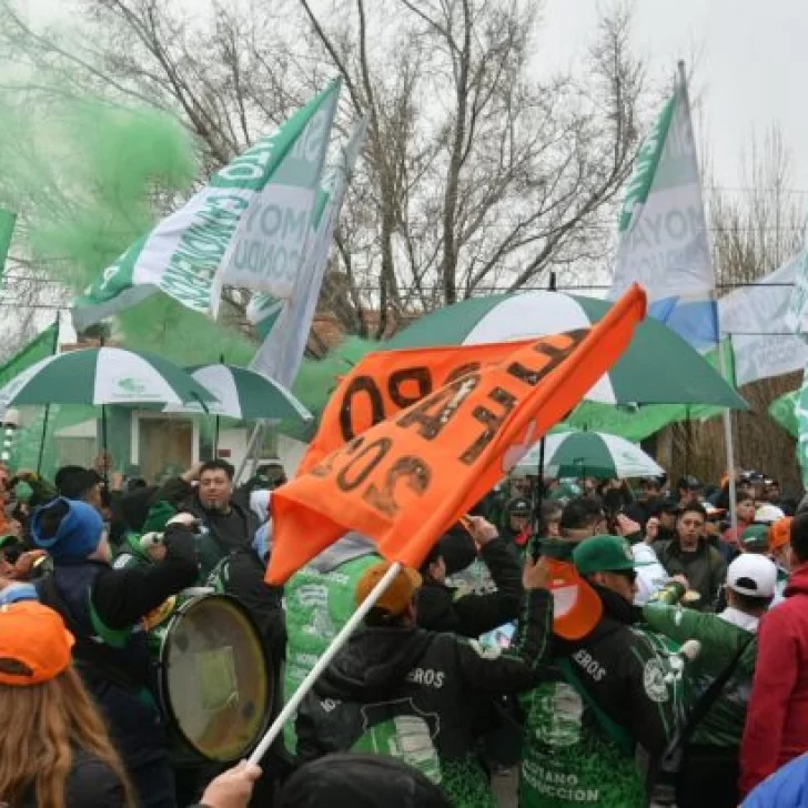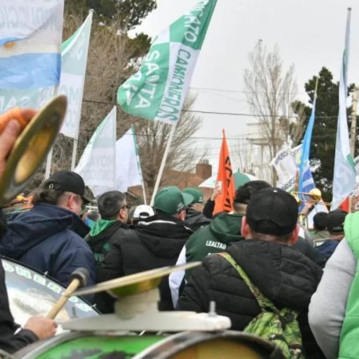 También llegó la columna del gremio de Camioneros que encabeza el precandidato suplente a diputado nacional Sergio Sarmiento, quien caminaba con un enorme camperón negro.