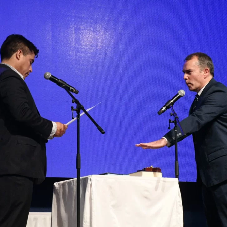 Tras la jura de Claudio Vidal como gobernador de Santa Cruz, que se realizó en el Polideportivo de Petroleros en Río Gallegos; el flamante primer mandatario provincial tomó juramento a los nuevos ministros del Gabinete Provincial.