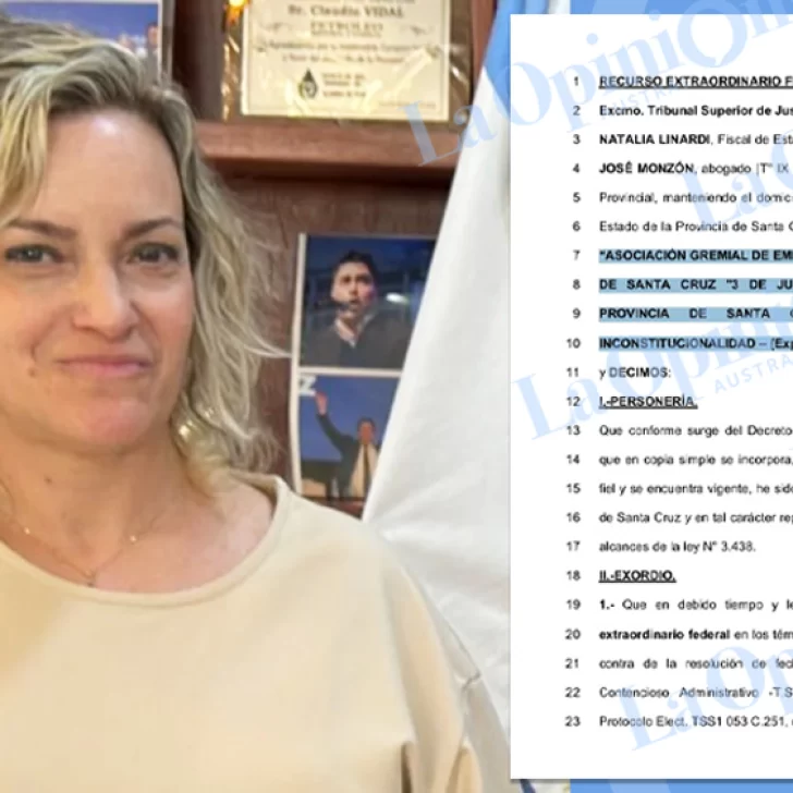 El Gobierno de la Provincia de Santa Cruz, a través de la Fiscal de Estado, Natalia Linardi, interpuso un Recurso Extraordinario Federal para que la Corte Suprema de Justicia de la Nación (CSJN) intervenga en la crisis institucional que sacude a la provincia. La medida busca revertir el fallo del Tribunal Superior de Justicia (TSJ) local que declaró inconstitucional la Ley 3.949, la cual ampliaba de cinco a nueve el número de miembros del máximo tribunal provincial.