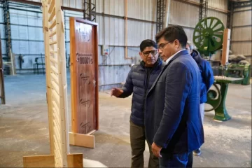 El gobernador Claudio Vidal recorrió este jueves el predio productivo de la firma, donde el presidente de la empresa, Gustavo Sivori, confirmó que finalizó la primera tanda de puertas placa fabricadas íntegramente con mano de obra santacruceña.