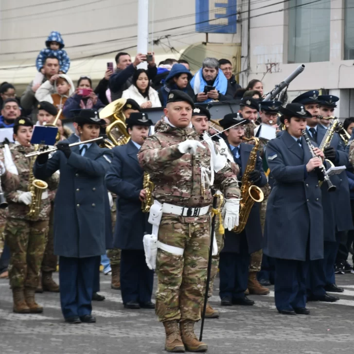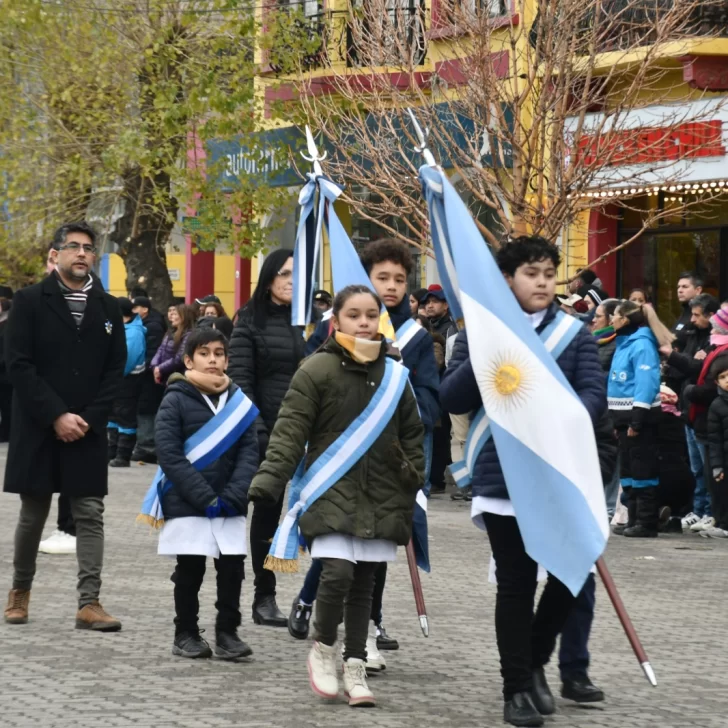 Este domingo, el centro de Río Gallegos fue el punto donde se convocaron los vecinos para conmemorar un nuevo aniversario de la Revolución de Mayo.