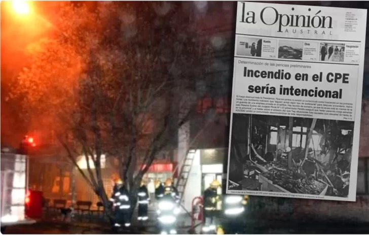 Alrededor de las 06 de la mañana del 9 de junio de 2011, un incendio de grandes proporciones consumía el edificio de la calle Kirchner donde funcionaba la sede del CPE (Consejo Provincial de Educación), en un contexto en el que se desarrollaba uno de los paros más extensos realizados por ADOSAC (Asociación Docentes de Santa Cruz).