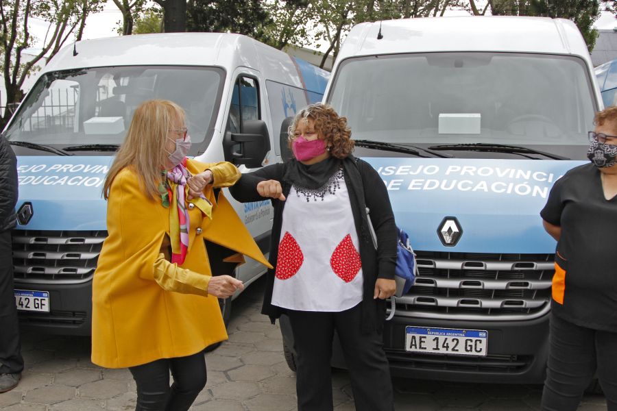 Asimismo, estuvieron presentes equipo directivo de las distintas escuelas y los choferes que tendrán a su cargo los vehículos. Los docentes dialogaron con la gobernadora y la presidenta del CPE sobre las particularidades del año pasado, signado por la pandemia y la cuarentena, y los esfuerzos que realizaron las instituciones educativas para mantener el vínculo pedagógico con sus estudiantes.