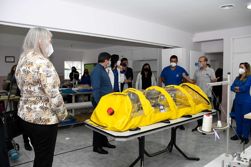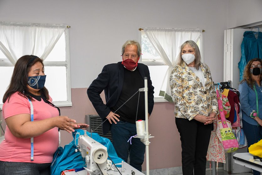 De la misma manera, las autoridades estuvieron presentes en la Cooperativa de Trabajo Textil Sur, a cargo de Érika Solís, que realiza su labor perfeccionando la confección de batas, camisolines y camperas de trabajo. Durante la pandemia confeccionaron más de 3000 barbijos para el Hospital, clínicas privadas. Actualmente siguen vinculadas a la clínica Medisur confeccionando camisolines y lo que la clínica les va solicitando.