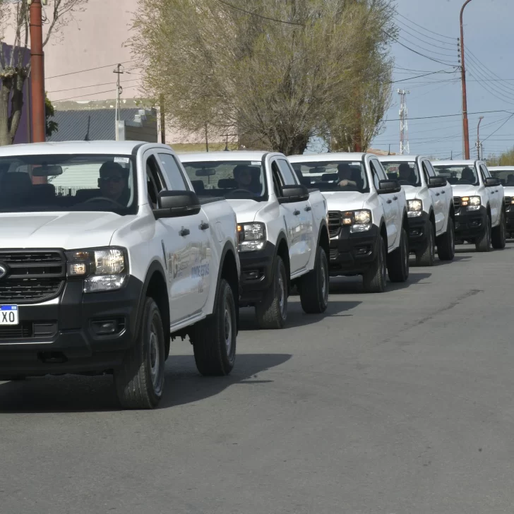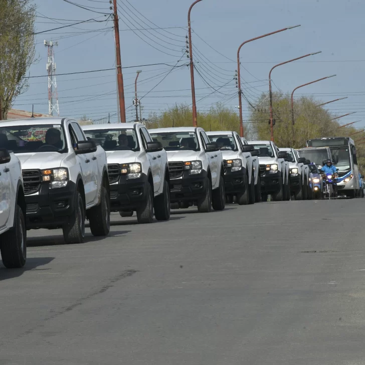 La compra incluye 20 camionetas Ford Ranger, camiones para obra pública y recolección, vehículos para la guardia urbana, y un colectivo adaptado para personas con movilidad reducida.