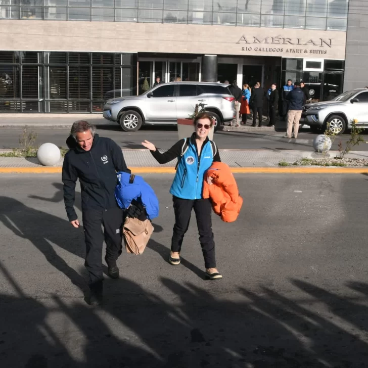Al centro de Río Gallegos llegaron pasadas las 21 horas, bajo un fuerte dispositivo de seguridad que ya había cortado desde tempranas horas de la tarde la circulación por la avenida San Martín y las calles circundantes al hotel Amérian, donde se alojaron. Esta mañana, pasadas las 9, partieron a la Antártida en un avión Hércules C-130.