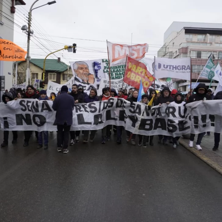 La columna fue encabezada por referentes de los sectores de cada uno de los que participaron en la marcha que llevaba una bandera dirigida concretamente a los tres legisladores de Santa Cruz que en esos momentos estaban en el Congreso: “Senadores de Santa Cruz, no a la Ley Bases“. Cuando fue tomando forma por la Avenida San Martín los manifestantes ocuparon poco más de una cuadra. Marcharon hasta la calle Alcorta y se dirigieron una cuadra más hasta la Casa de Gobierno.