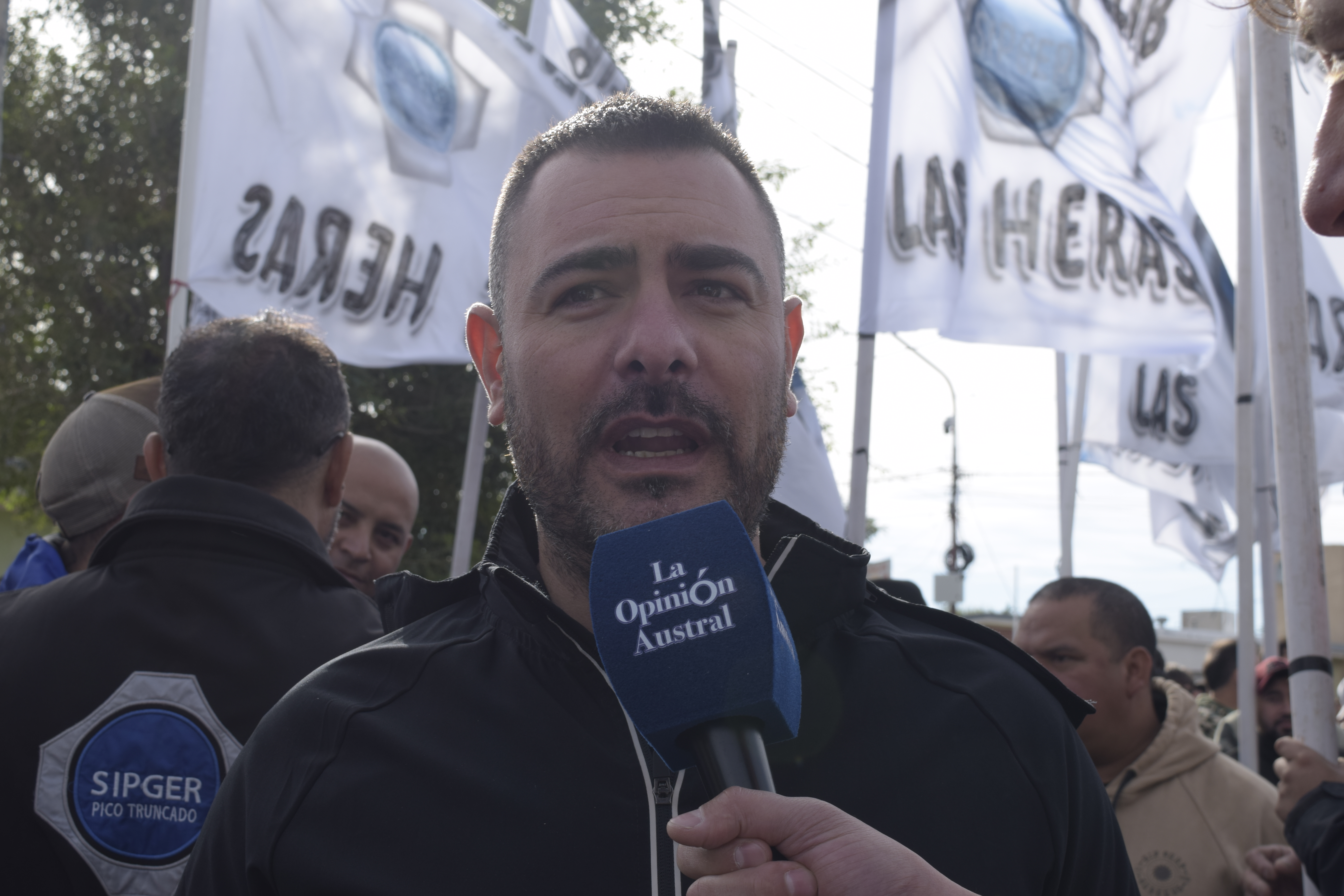 Nallib Rivera, secretario adjunto de SIPGER, habló con el móvil de La Opinión Austral, en la previa del discurso del gobernador Claudio Vidal desde la zona norte de Santa Cruz.