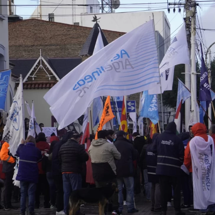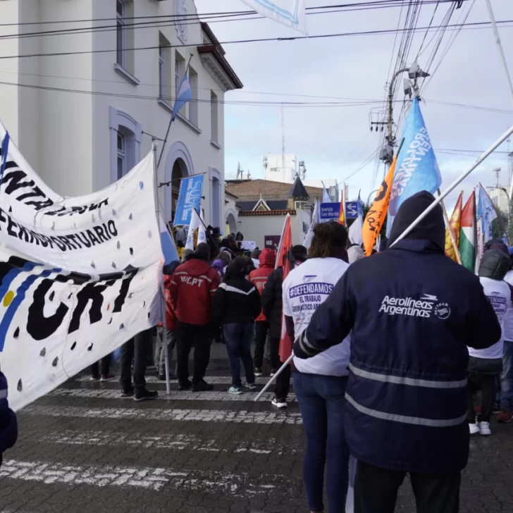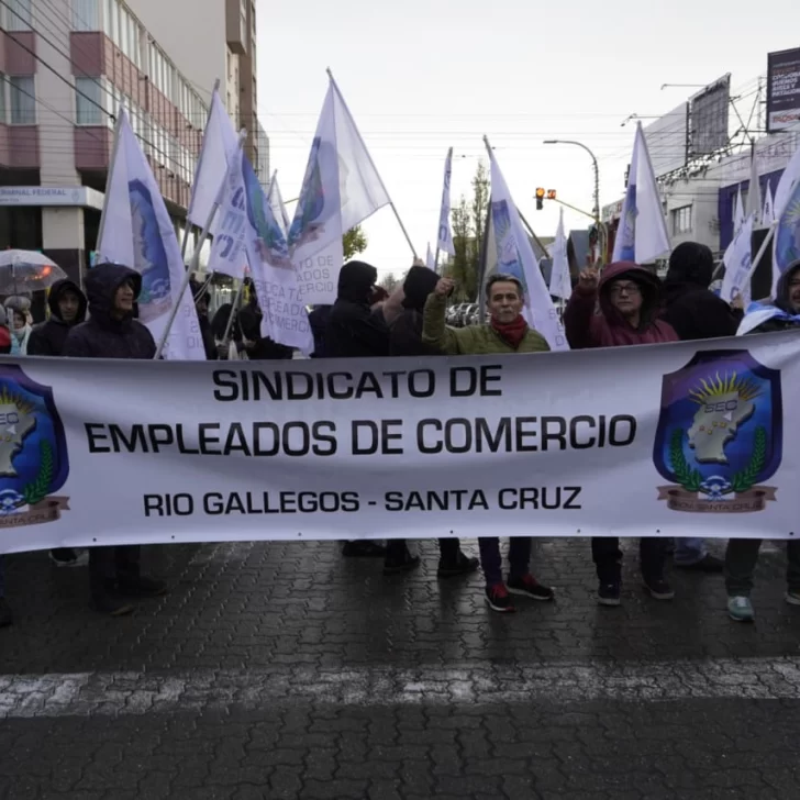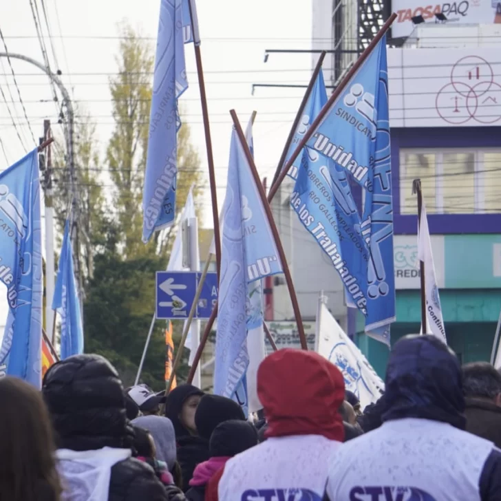 Distintas organizaciones gremiales y políticas se concentraron en el mástil central de Río Gallegos, ubicado en las avenidas Kirchner y San Martín, para la movilización central del paro general convocado por la CGT.