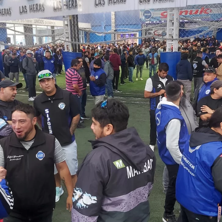 Desde La Opinión Austral, radio LU12 AM680 y FM Las Heras, seguimos minuto a minuto el desarrollo de la asamblea que reúne a más de 1.000 trabajadores y referentes gremiales.