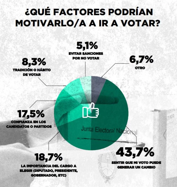 Por otro lado, los factores que desmotivan a los ciudadanos a acudir a las urnas ya estaban claramente definidos, mucho antes de la elección. La falta de confianza en los partidos y en los candidatos lidera la lista, con un 25% de los consultados señalándolo como principal razón. Le siguen la desconfianza en el sistema electoral (17,7%) y la percepción de que el voto no trae cambios (17,5%). Estos datos reflejan un escenario donde la desilusión y el escepticismo se consolidan como obstáculos para la participación cívica.