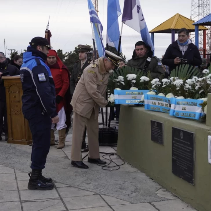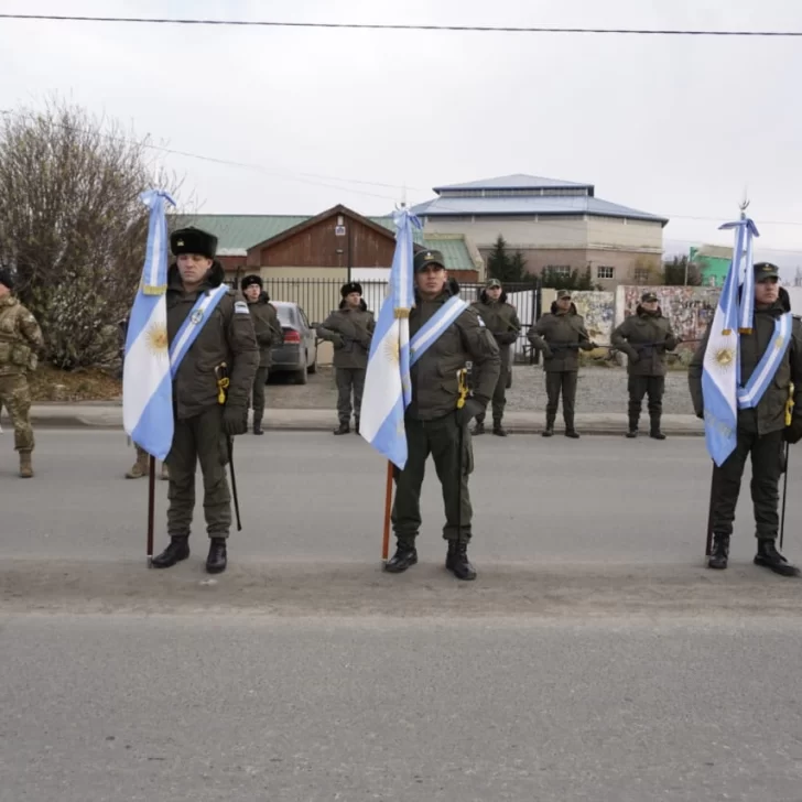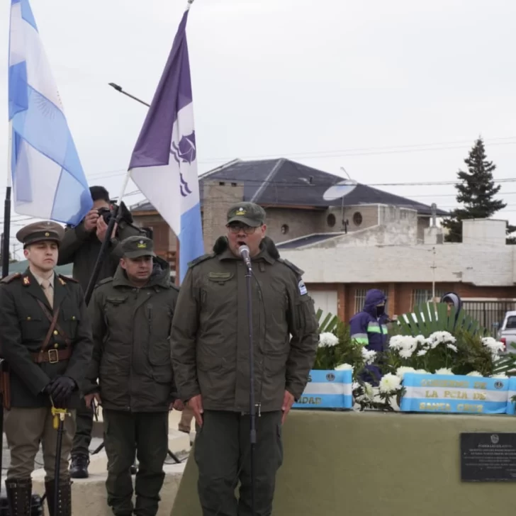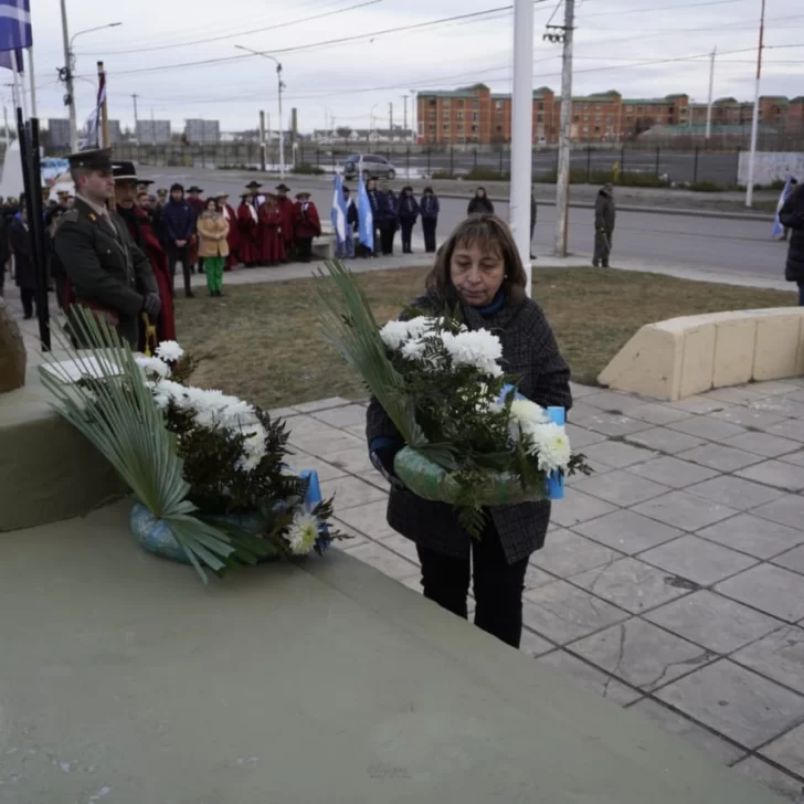En Río Gallegos, la ceremonia se realizó en la Plaza Güemes, ubicada sobre la Av. San Martín. El acto protocolar contó con la presencia de autoridades provinciales, municipales, concejales, efectivos de las fuerzas armadas y de seguridad, entre otros.