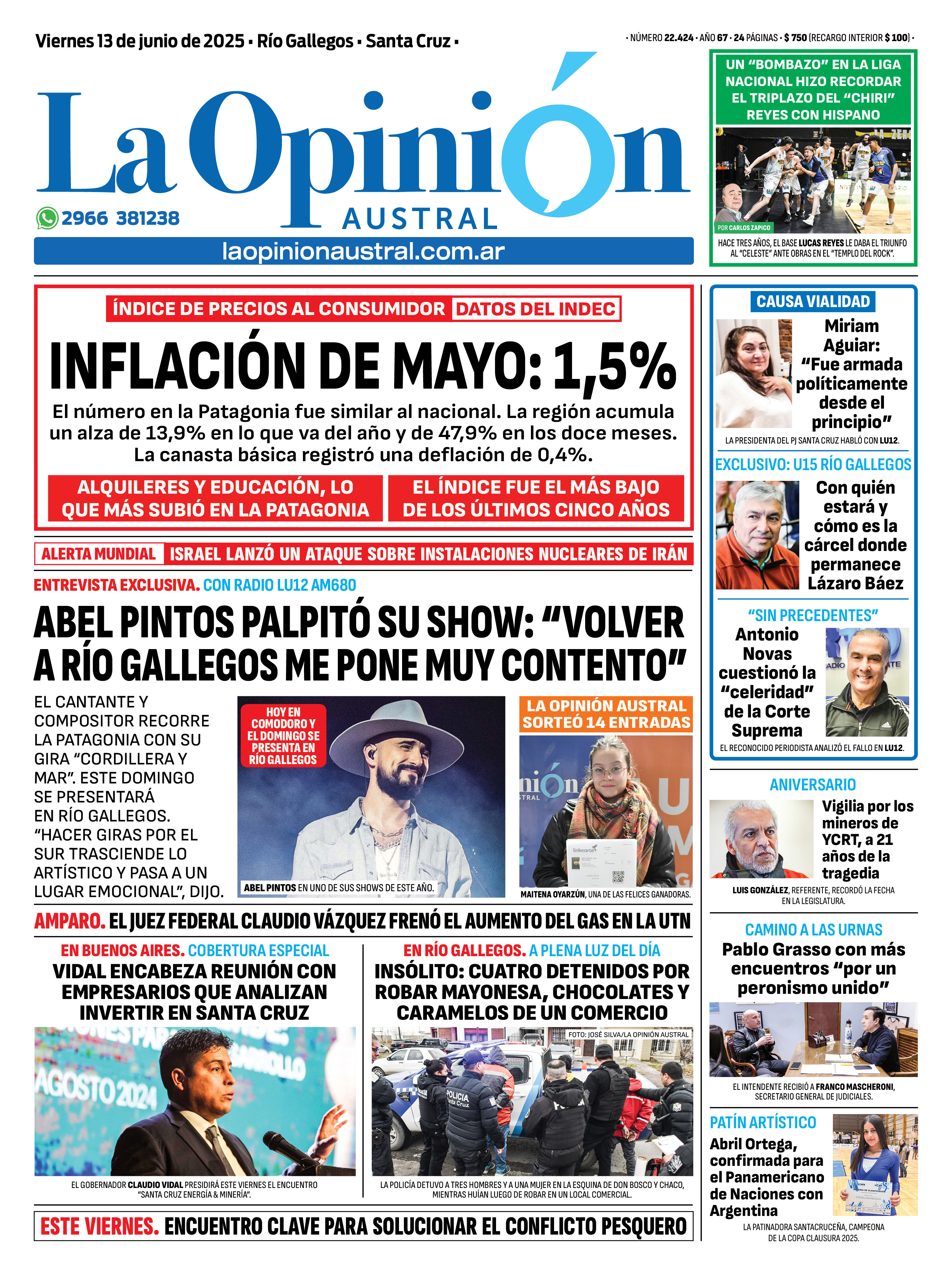 En el marco de la gira nacional “Cordillera y Mar”, que inició en Mendoza, siguió en Neuquén y continuó en Río Negro, Abel Pintos regresó a la Patagonia. Tras presentarse en Comodoro Rivadavia este viernes y en Pico Truncado, este sábado, llegará a la capital santacruceña este domingo 15 de junio a las 21:00.