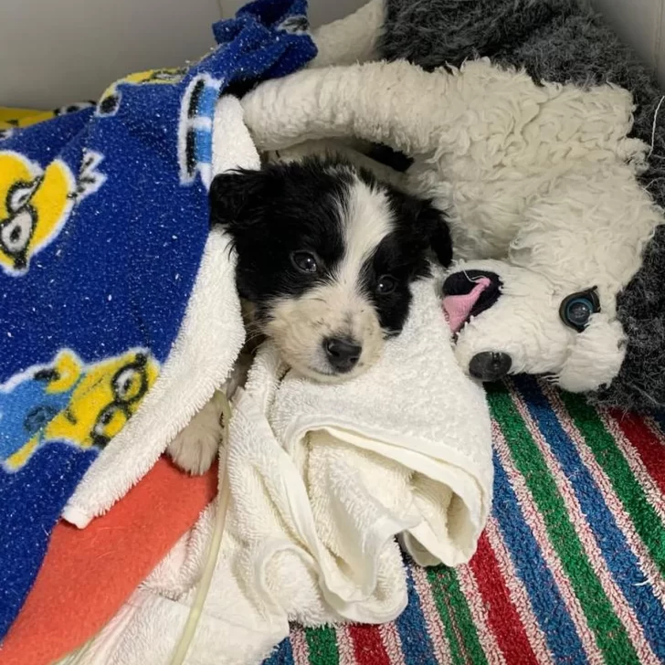 El pequeño animal atraviesa un estado muy delicado: pesa apenas 900 gramos, está desnutrido, deshidratado y con sospecha de parvovirus. Ahora está luchando por su vida.