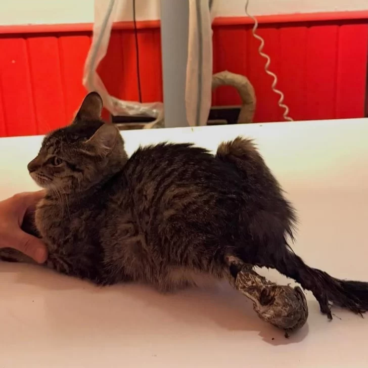 Hace cuatro días vecinos de Río Gallegos contactaron a la agrupación Valentín en cada huella, debido a que apareció una gatita de un año que se escontraba muy lastimada. Apenas surgió el llamado los rescatistas no duraron en llegar al lugar y llevarla de urgencia al veterinario. “Nada nos preparó para lo que vimos” comentaron con angustia.