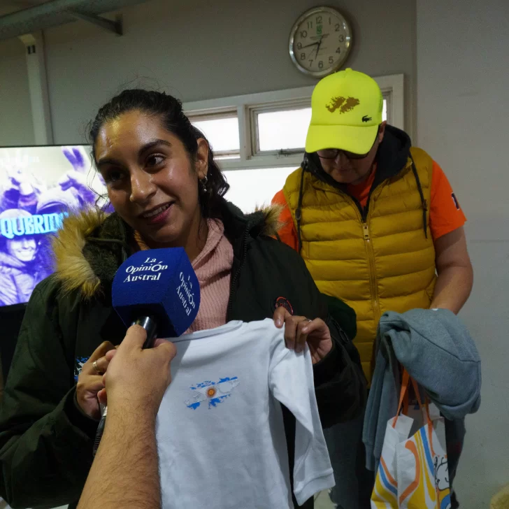 Entre quienes participaron este miércoles estuvo Lali, una joven mamá que llevó prendas para su bebé. “Es para mi hija, Mari Lidia. Para mí es un orgullo y un honor porque las Malvinas son argentinas, y quiero que ella lo lleve siempre”, expresó emocionada.
