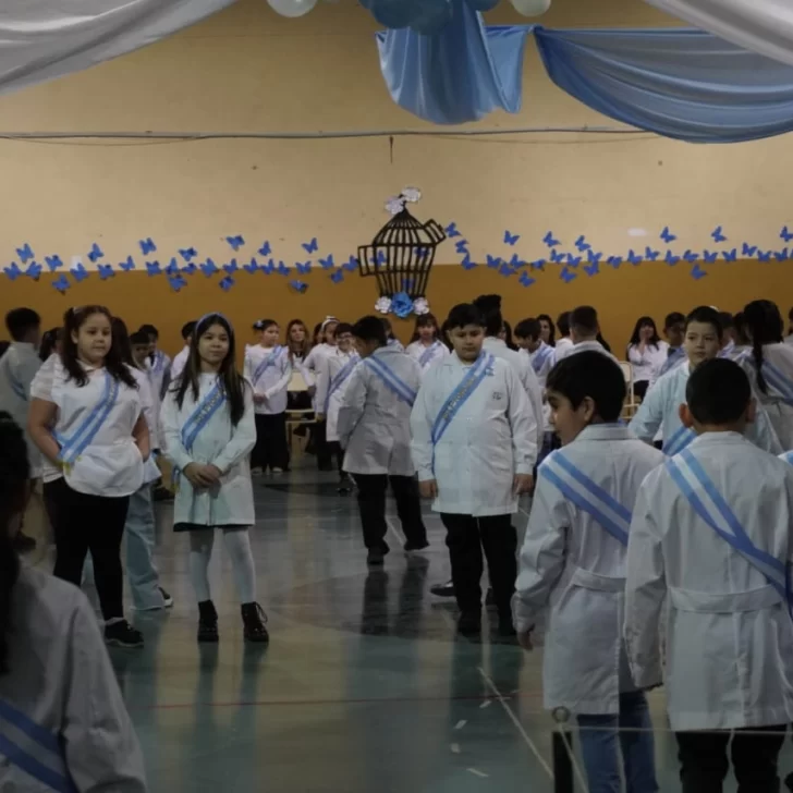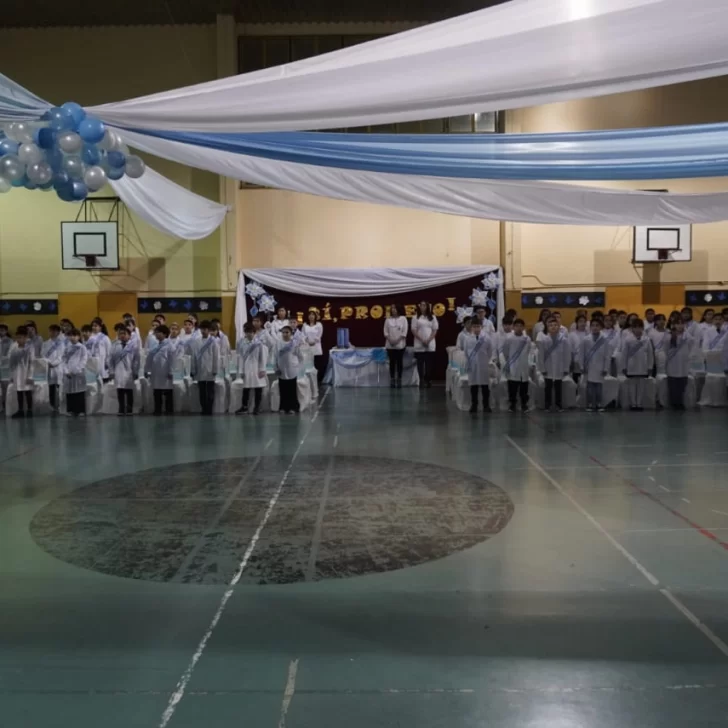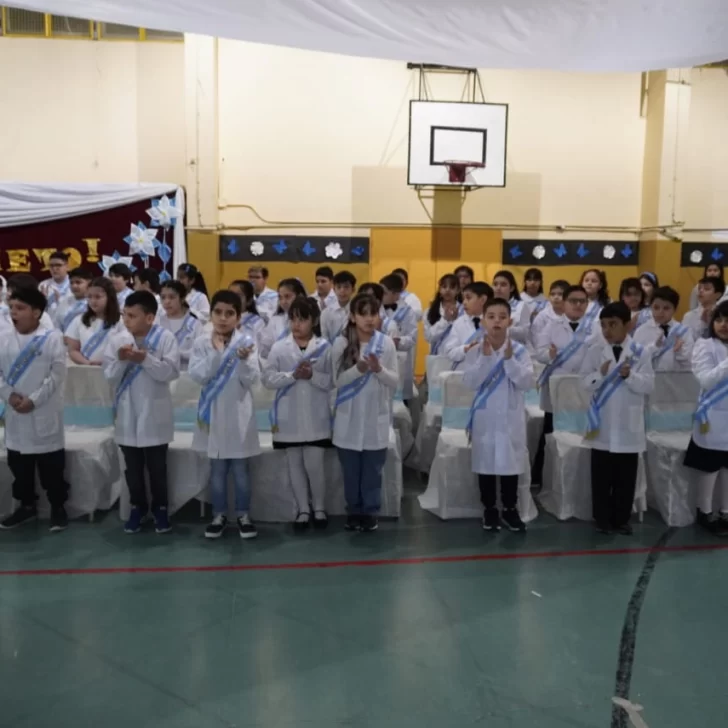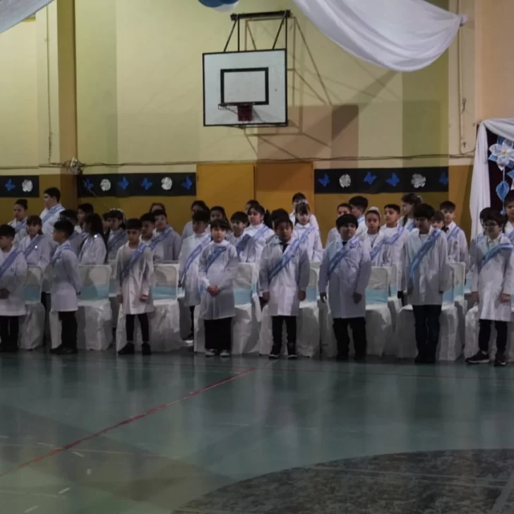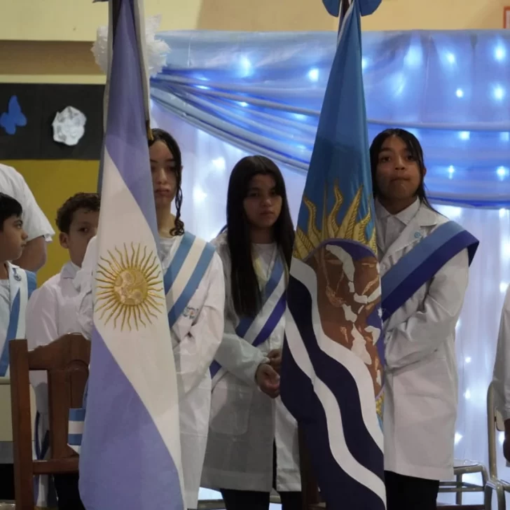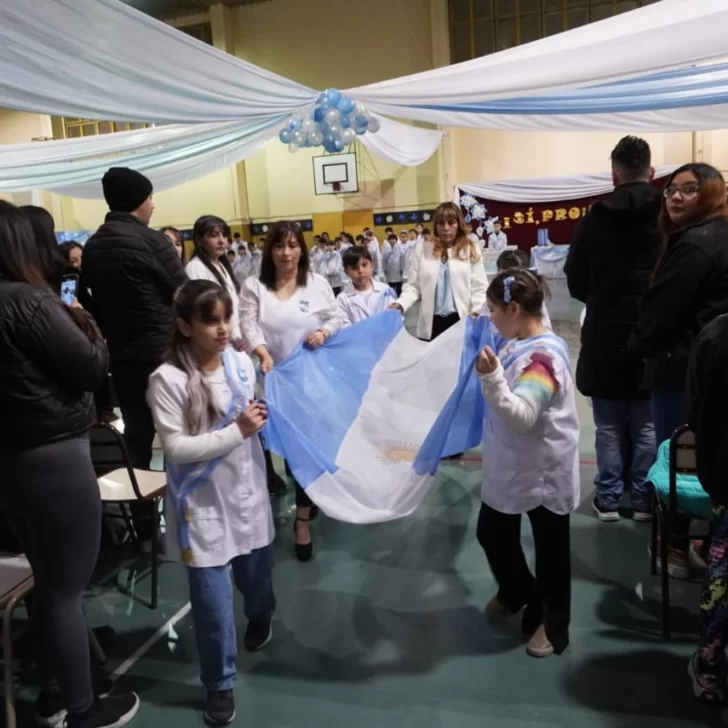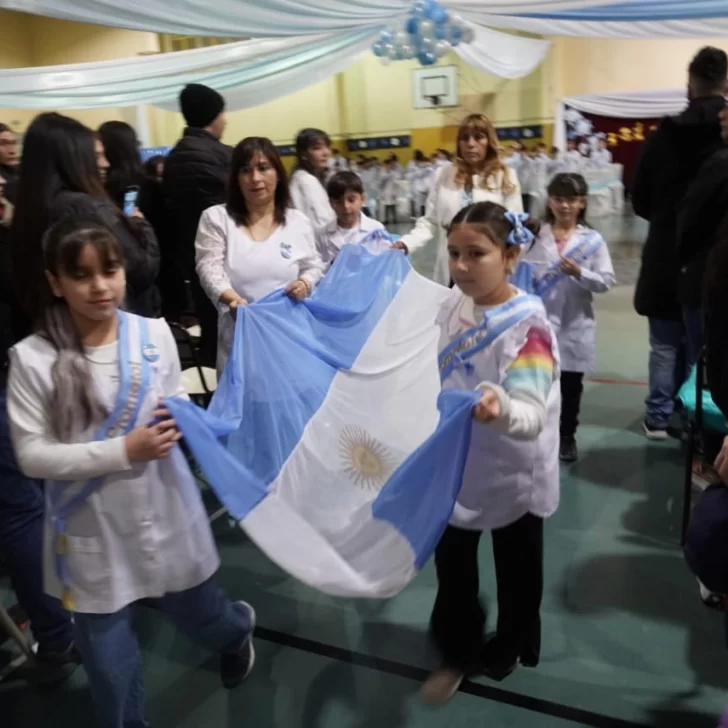 Este martes, alumnos de cuarto grado de los establecimientos educativos Río Gallegos vivieron un emotivo acto de promesa a la Bandera Nacional Argentina en las escuelas de la ciudad. La ceremonia, que se realiza todos los años en conmemoración del Día de la Bandera, es un momento significativo para los alumnos, quienes renuevan su compromiso con la patria y sus valores.