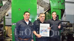 Felix, Juan y Mauro Benitez, la familia trabaja junta en la planta de La Opinión Austral con el primer numero a color.
