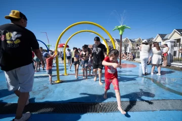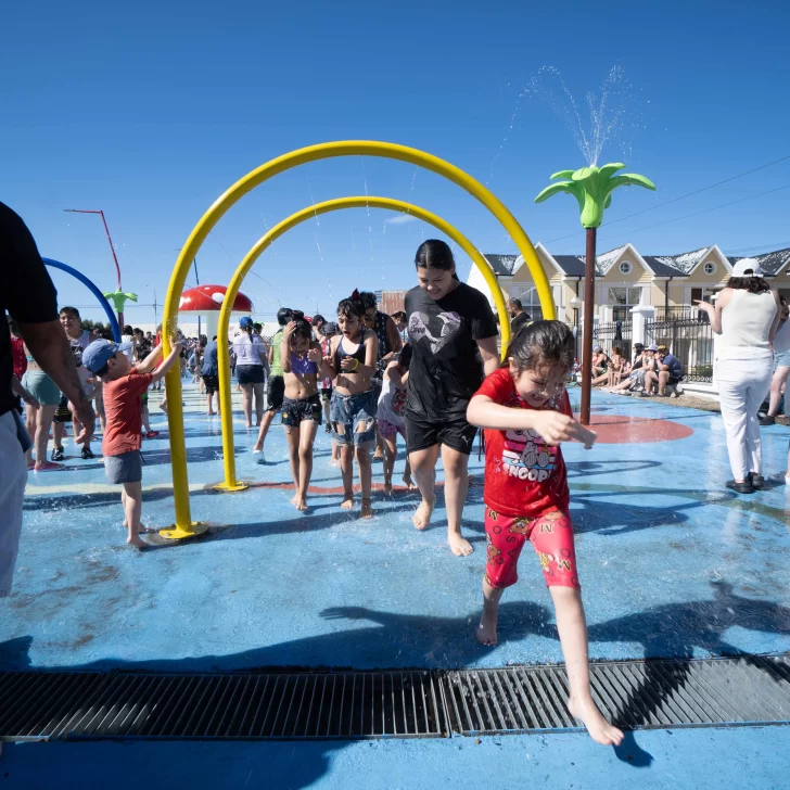 Ubicado en plena costanera local, a metros de la Plaza de los Campeones y del Parque de la Niñez, el espacio de esparcimiento estuvo colmado por niños y niñas que disfrutaron de refrescarse y jugar al aire libre.