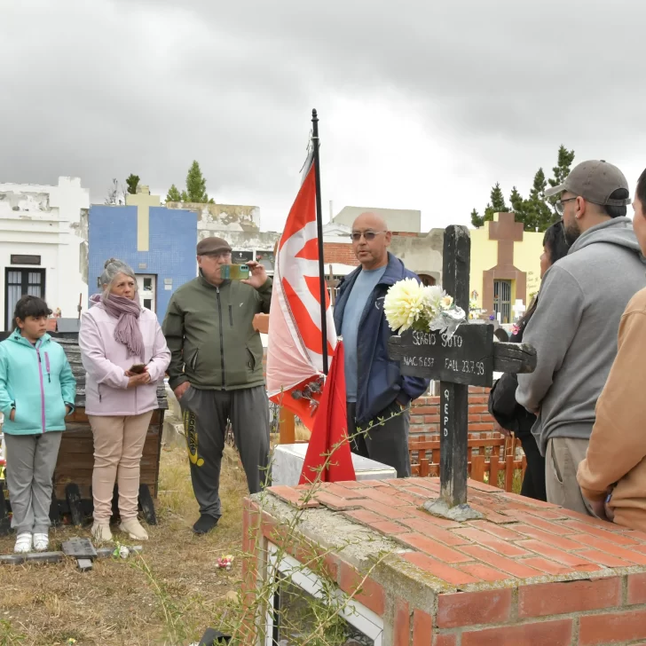 Desde hace varios años, cada 2 de enero, se lleva a cabo el acto en el cementerio de Río Gallegos. Este viernes, bajo una lluvia intermitente, una veintena de vecinos y familiares de los huelguistas participaron del homenaje.
