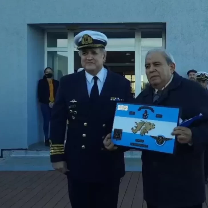 Además, durante el acto, el jefe de la Zona Naval Santa Cruz le hizo entrega de una placa honorifica a Alfredo Tarcaya y le agradeció por su labor durante la Guerra de Malvinas.