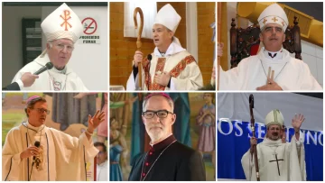 Los obispos Alejandro Buccolini, Juan Carlos Romanín, Miguel Ángel D'Anníbale, Jorge García Cuerva, Ignacio Medina y Fabián González Balsa.