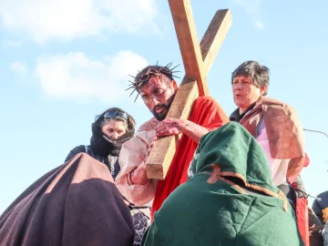 Cada una de las 14 estaciones que relatan la pasión, muerte y sepultura de Jesús fueron recreadas este Viernes Santo por las calles de Río Gallegos.