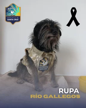 Los perros son compañeros indispensables de la Policía y la pérdida de uno de estos amigos de cuatro patas también representa la partida de un integrante de la fuerza. Precisamente, el personal de la División Operaciones Rurales de Río Gallegos despidió a Rupa con un emotivo mensaje: “Hasta siempre“.