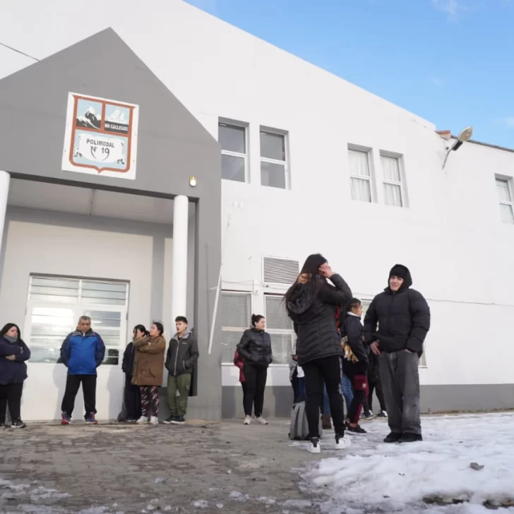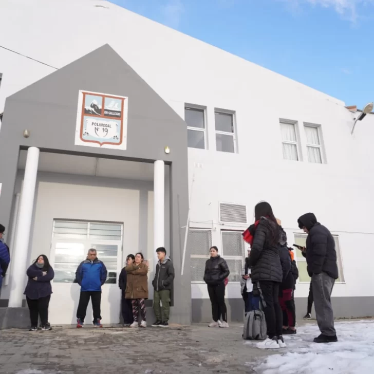 “Venimos en reclamo porque no tenemos clases desde el día 13 de junio. El primer problema es la calefacción, tenemos una caldera que no está en condiciones de uso. Si no me equivoco al Gobierno le llegaron 15 calderas, una de ellas debería estar destinada al Colegio N°19. Después tenemos el problema del agua, que surgió hace unos días con la escarcha, se rompió un caño de agua y se dañaron suministros y computadoras”, remarcó.
