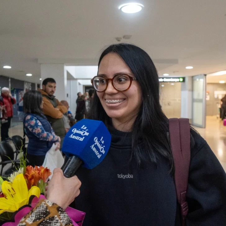 En ese contexto, una escena llamó particularmente la atención. Un hombre sostenía un ramo de flores y observaba con gran expectativa la puerta de arribos. La Opinión Austral, presente en el lugar, dialogó con Antonio, quien comentó que esperaba a su sobrina junto a su pareja. Asimismo, también la aguardaban la madre, el padre, la hermana y una prima de la joven, que logró un importante objetivo personal: recibirse de contadora.