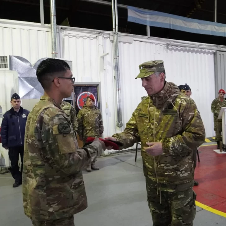 Luego de la entonación de las estrofas del Himno Nacional Argentino -acompañado por la banda militar de la Fuerza Aérea-, y tras la bendición de los diplomas, boinas y distinciones, los soldados recibieron sus certificaciones.