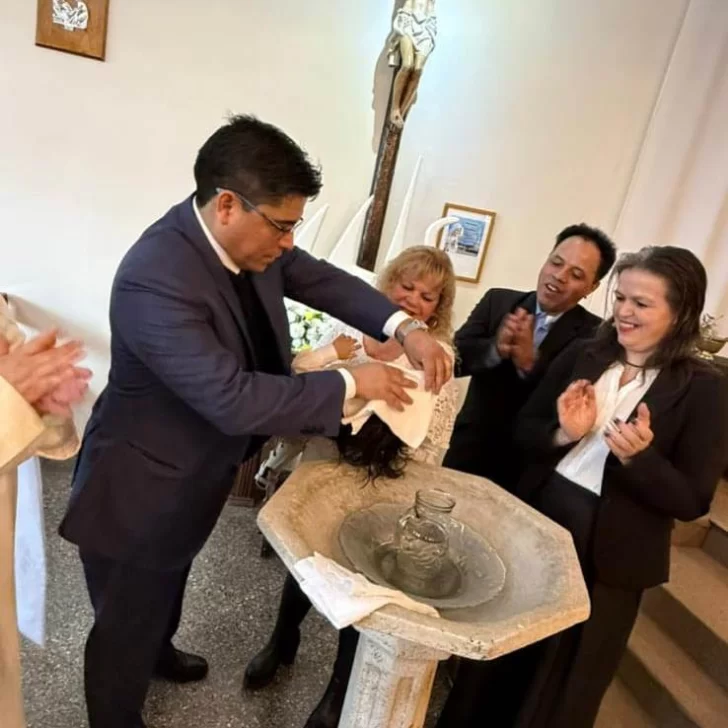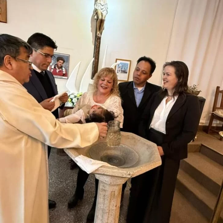 El bebé, que aún no recibió el Padrinazgo Presidencial, fue bautizado este sábado y entre los presentes estuvo el gobernador Claudio Vidal, quien lo había visitado en su hogar y se tras ofrecerse como padrino, cumplió con la palabra empeñada.