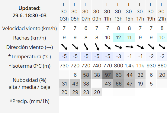 Según Windguru, la temperatura máxima será de -1°C en horas de la tarde.