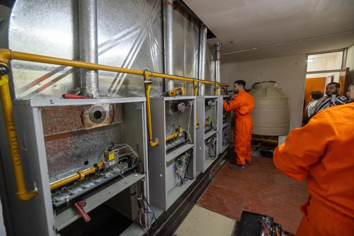 Además, el personal técnico repara los siete equipos existentes en el edificio. La intervención incluye la revisión integral de los caños de gas, la verificación de cañerías, la instalación de los nuevos artefactos y el control de los ductos para asegurar el correcto funcionamiento del sistema.