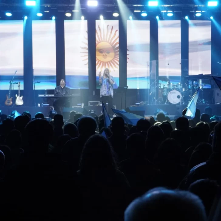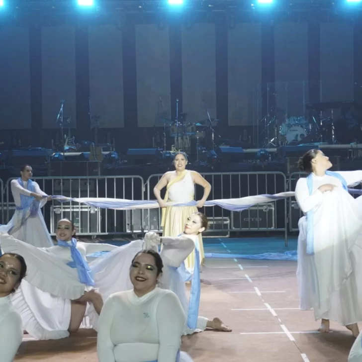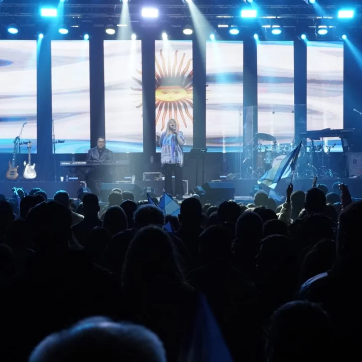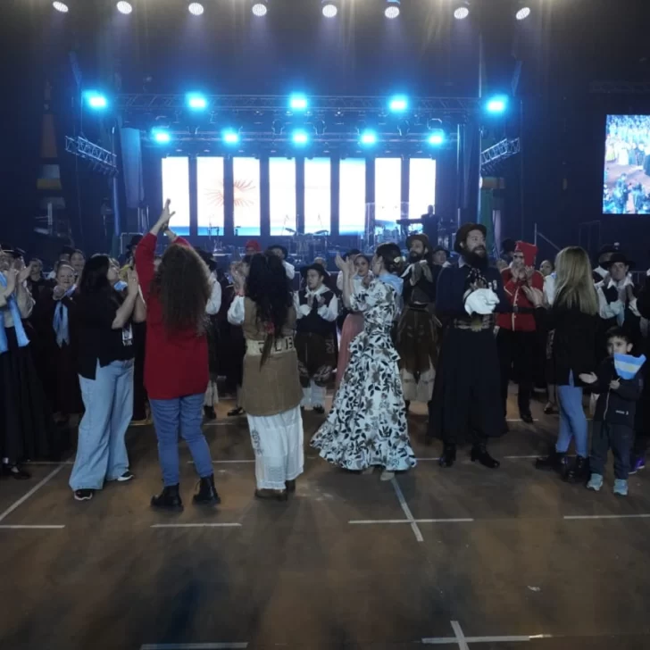 A las 00 horas, Andrea Moreno, acompañada por el tecladista Andrés Abelli, entonó el Himno Nacional Argentino y el predio del Polideportivo se tiñó de celeste y blanco. El broche de oro lo pusieron Los Nocheros, con un espectáculo que cautivó a grandes y chicos.