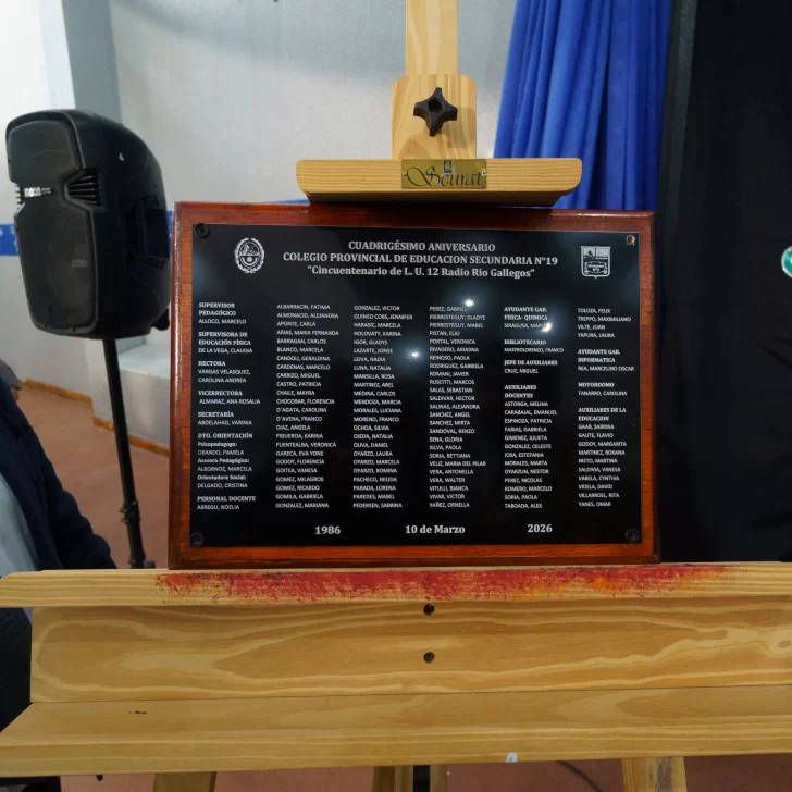 “El secundario funcionó en donde hoy está el Conservatorio Provincial de Música y hay documentación que data incluso de 1971. En 1989 se lo bautiza ‘Cincuentenario de LU12 Radio Río Gallegos’, que por entonces cumplía 50 años y se convirtió en padrino de la institución”, explicó Vargas.