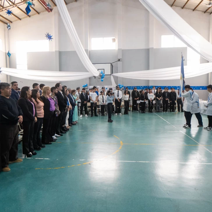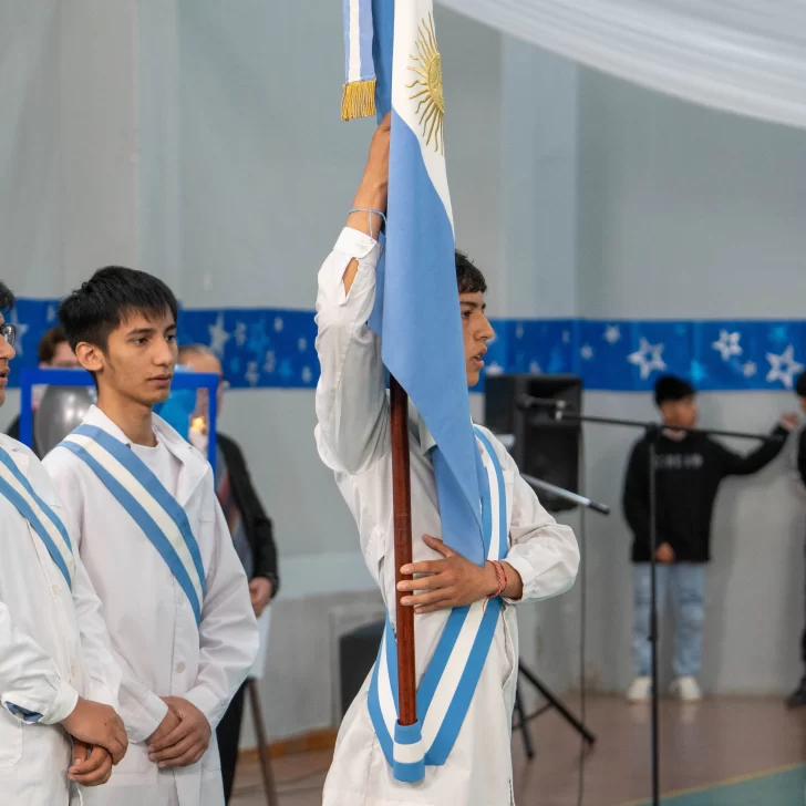 La rectora agradeció además el apoyo recibido para la celebración: “No dejo de mencionar que por suerte los padrinos de la institución hoy nos colaboran con lo que es el ágape y la torta para los chicos, así que le agradezco a LU12 AM680 por esto”.