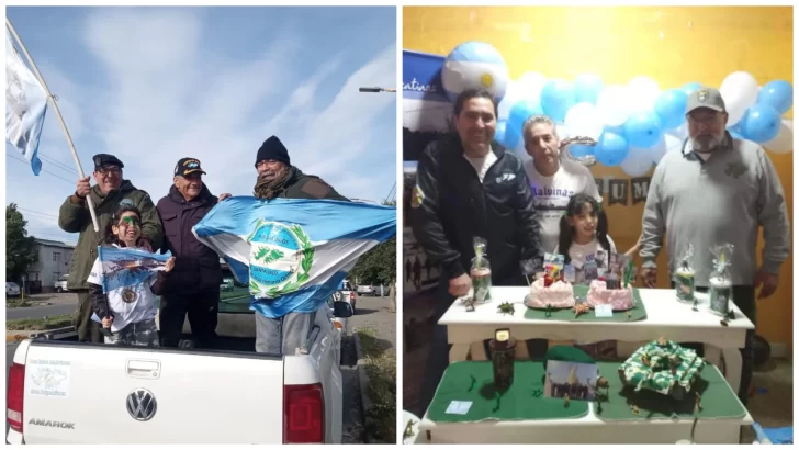 Con globos celestes y blancos, banners con imágenes de la guerra de Malvinas, decoración de camuflaje verde, aviones y tanques, en la fiesta se vivió el sentimiento malvinero a pleno.