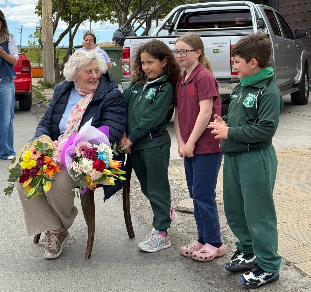 La calle Sarmiento estaba cortada y a lo lejos comenzaba a escucharse una melodía. La Banda de Música “14 de Noviembre” de la Policía de Santa Cruz se acercaba para saludar a “Granny”, como cariñosamente la llaman en su familia.