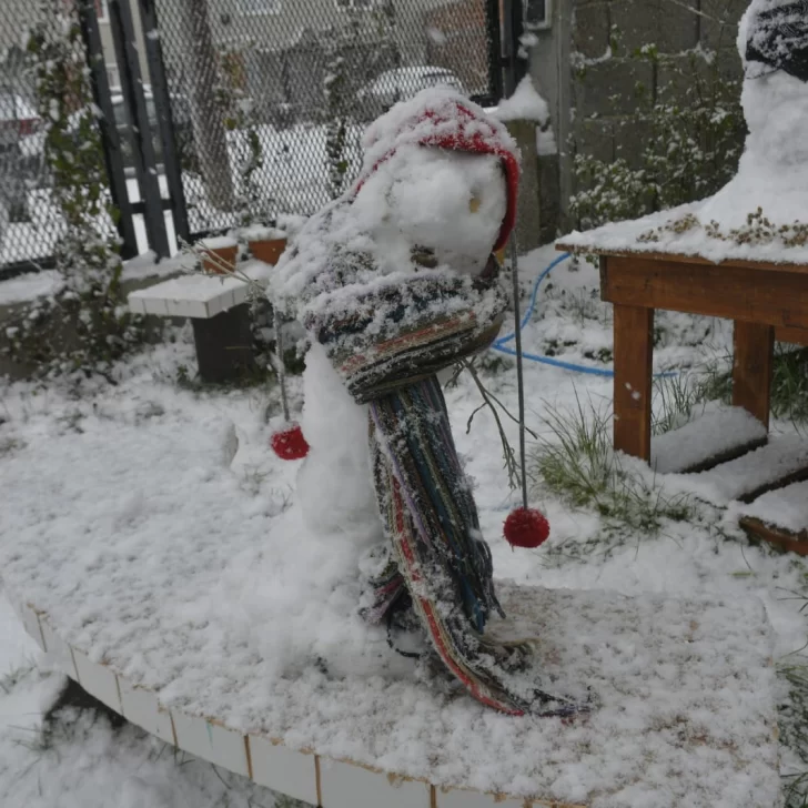 En las imágenes capturadas por este medio, se puede observar cómo, típicamente en este tipo de situaciones, algunos vecinos se animaron a construir llamativos muñecos de nieve.